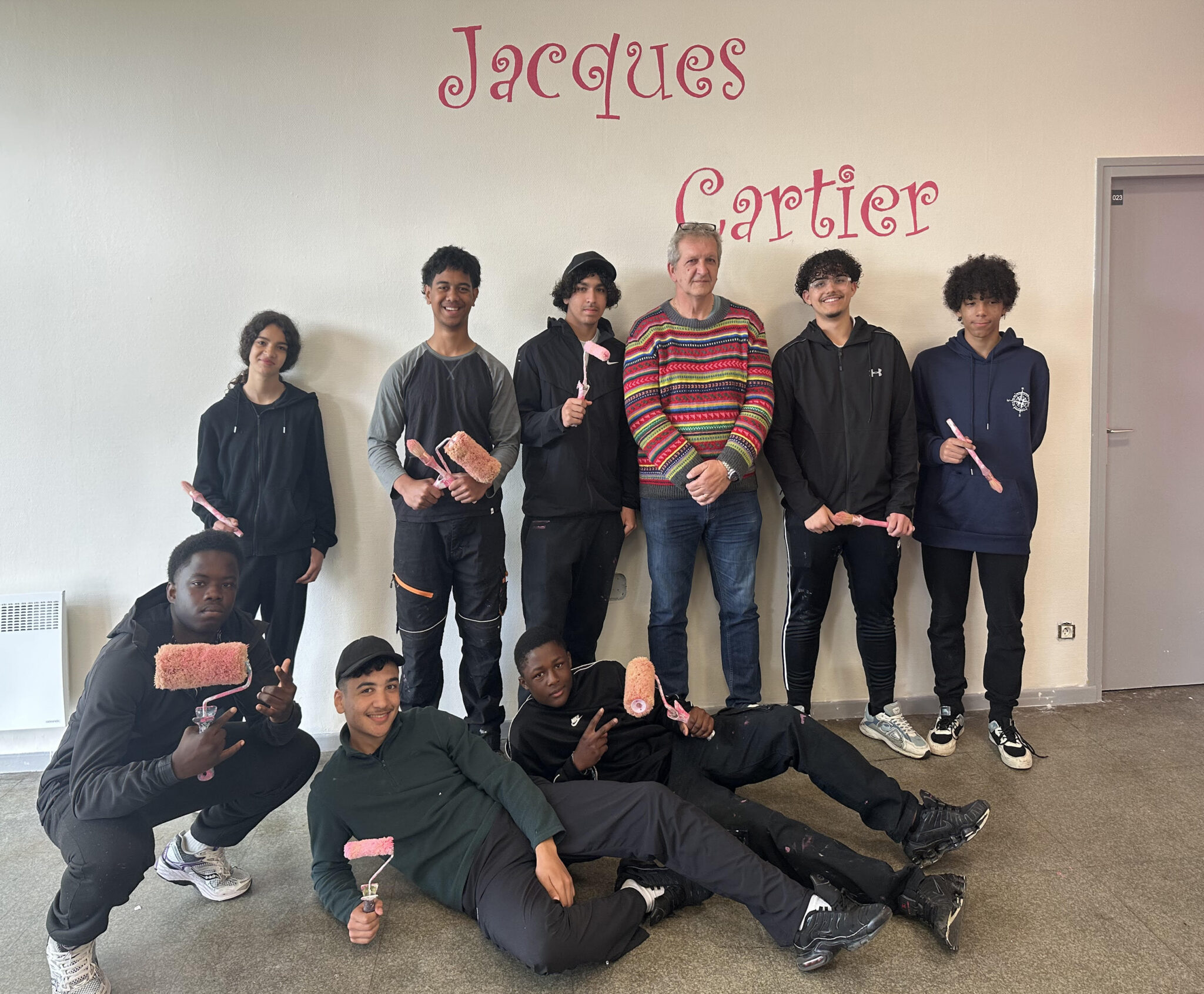 « Les jeunes vont pouvoir profiter de ces nouvelles couleurs », sourit fièrement Honorai, 17 ans. Un joli rose framboise pour la salle fraîchement peinte du centre socioculturel Jacques Cartier.