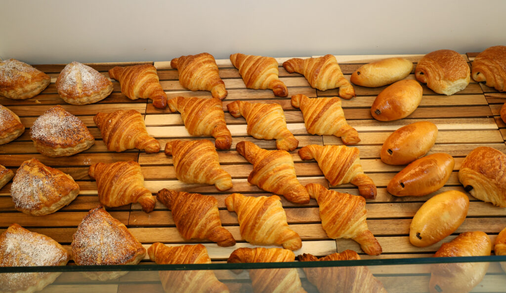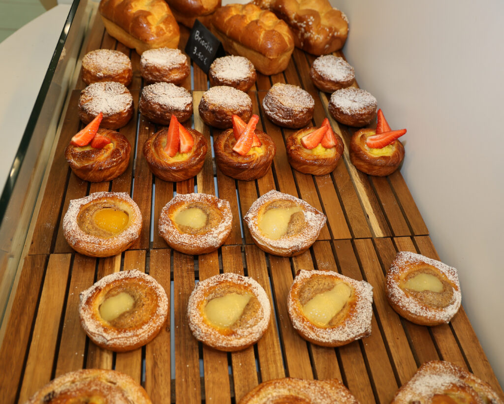 Le plus insolite se trouve au rayon viennoiserie. Le boulanger a ramené un brin culturel d’Asie et décline la pâte du croissant à différentes saveurs revisitant ainsi notre symbole national : croissant fraise, croissant abricot-poire, croissant au sucre… Et beaucoup se laisse tenter. Rassurez-vous, le professionnel n’a pas banni le traditionnel emblème. Il a aussi réglé à sa façon l’insoluble conflit entre chocolatine et pain au chocolat… en proposant les deux variantes.