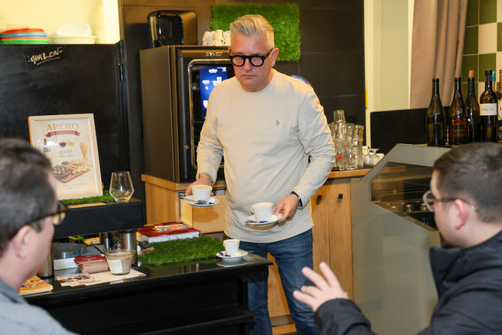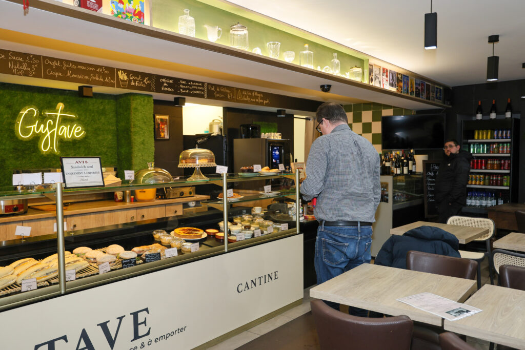 S’il a conservé la partie bar à salades, il a ajouté sandwichs et plats du jour traditionnels comme l’aligot ou l’onglet. « Et il vaut mieux réserver en fin de semaine ». Il entend même à partir d’avril instauré le poulet frites du samedi. Du fait maison, il a embauché pour cela un cuisinier et une serveuse – avec des produits frais. Une cantine du midi, pas de service le soir, avec « le jeudi jusqu’à 21h pour l’apéro ».