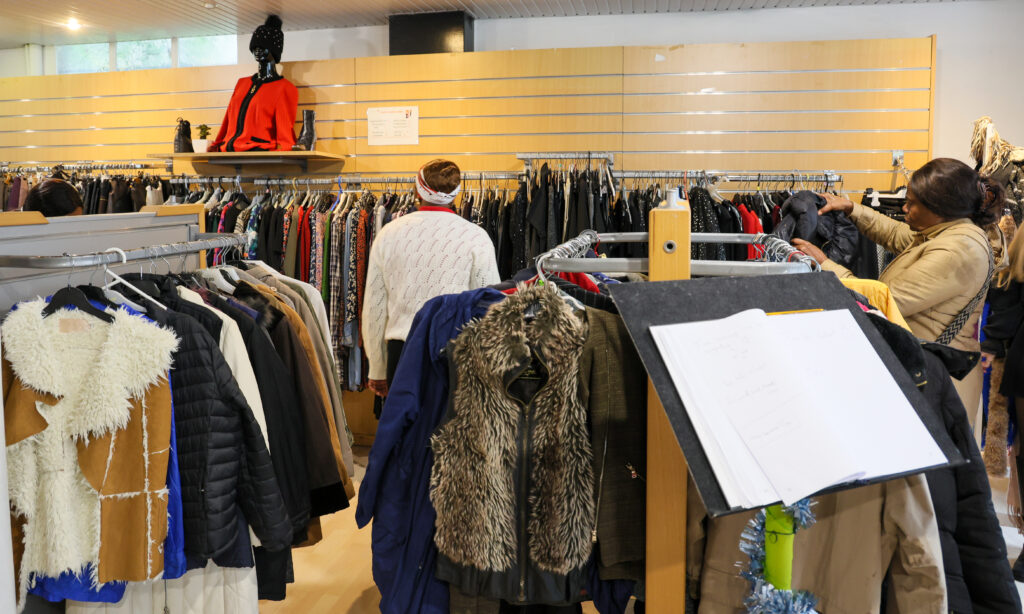 Les après-midi, du mardi au vendredi, la boutique ne désemplit pas. On vient fureter entre les rayons de vêtements femme, homme, enfant ou linge de maison, à de très bas prix qui permettent de se faire plaisir, de s’équiper sans se ruiner ou de consommer plus responsable.